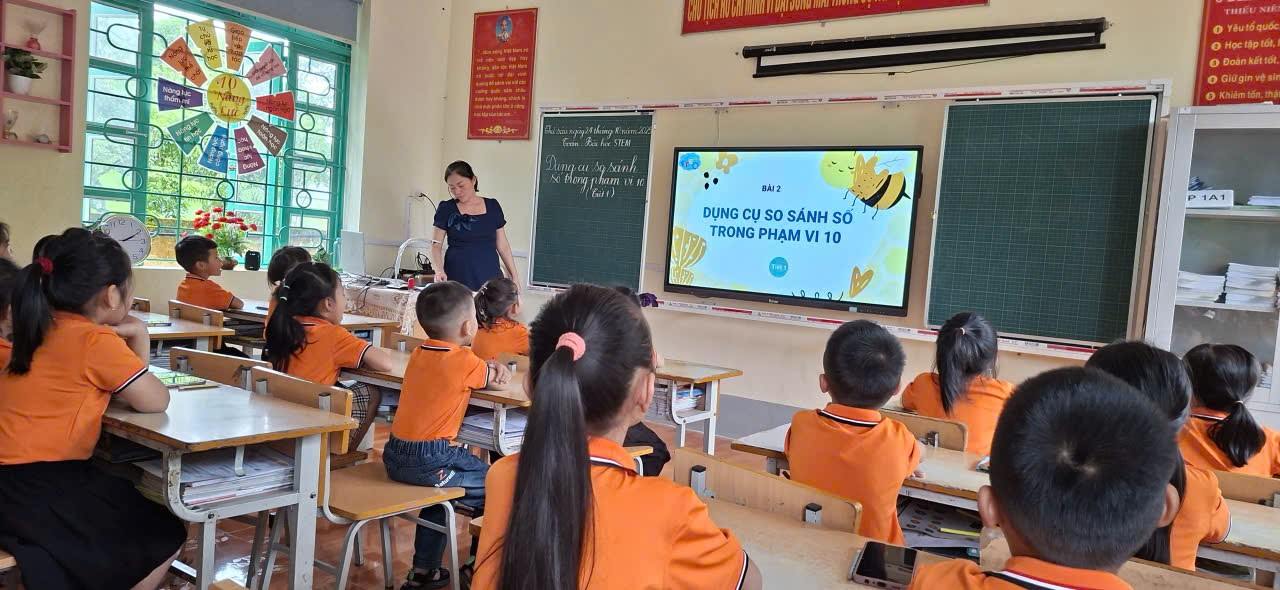Tiết học môn Toán với chủ đề Bài học STEM “Bài 2. Dụng cụ so sánh số trong phạm vi 10” là một tiết học thú vị và bổ ích không chỉ mang đến cho học sinh những kiến thức chủ đạo về toán học mà còn đặc biệt hội tụ đủ các nội dung giáo dục lồng ghép; tích hợp: STEM, hội hoạ Mĩ thuật; Âm nhạc và giáo dục kỹ năng sống, năng lực số cho các em HS ngay từ lớp học đầu cấp học.