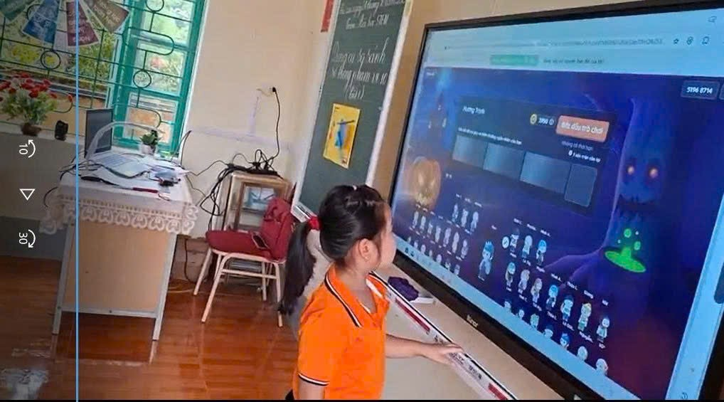 Đến hoạt động vận dụng, cô giáo đã tổ chức cho học sinh chơi trò chơi tương tác học tập trực tuyến trên màn hình ti vi và điện thoại thông minh. Em nào cũng hào hứng, tích cực tham gia và vô cùng thích thú. Qua đó cô giáo đã lồng ghép giáo dục và phát triển năng lực số cho HS.